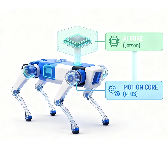 运动小脑固化毫秒级动态平衡响应;AI 大脑驱动深度感知与自主决策,稳定共生。