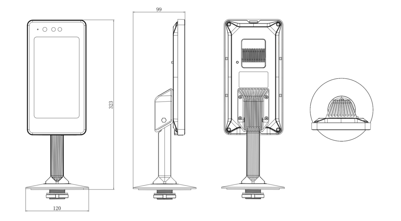 Relay, Wiegand input/output, RS232, RS485, Door sensor, Exit button, 2 Type-A USB, MIC