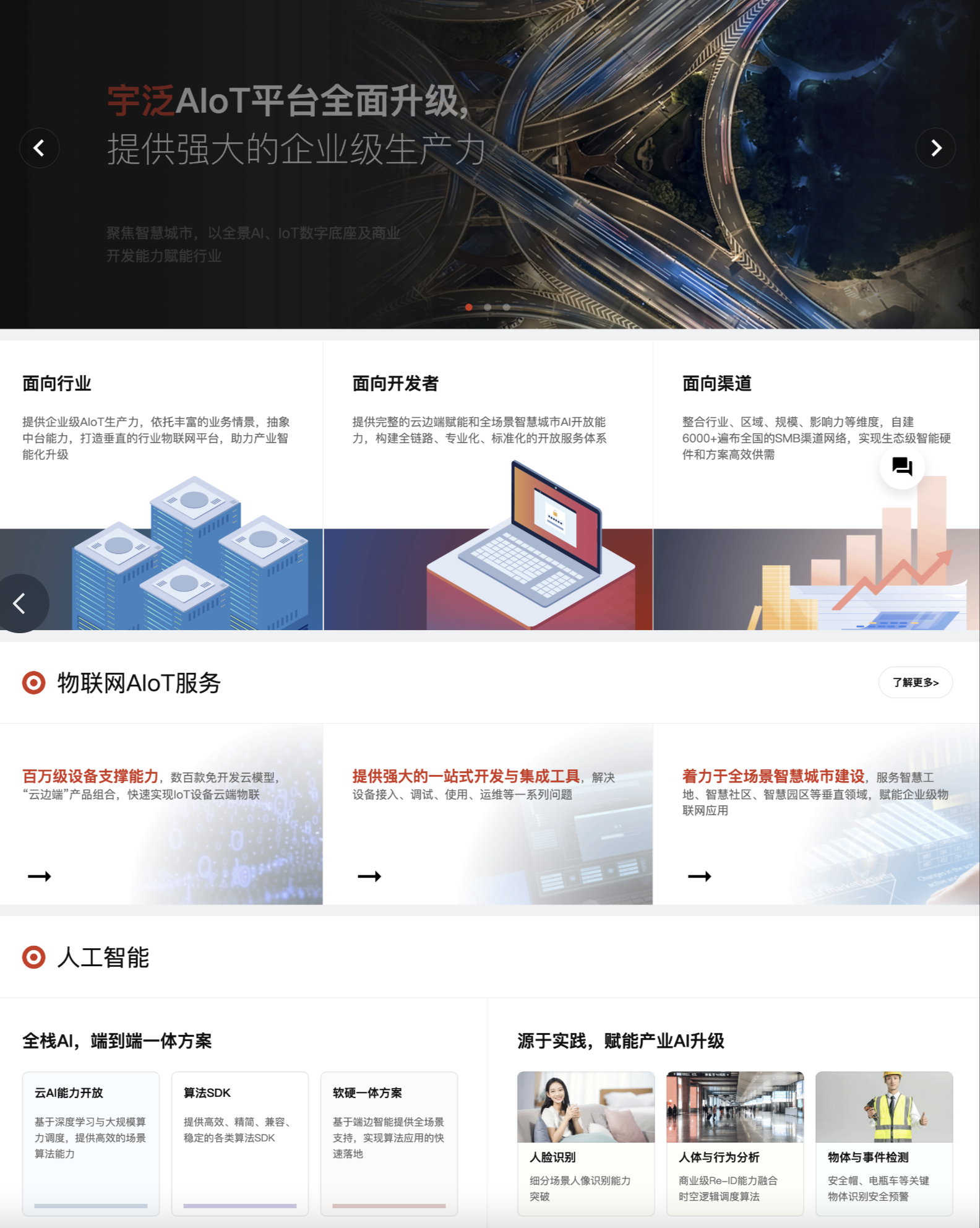 宇泛自成立以来,便一直秉承“用有思想的技术,创造无处不在的美好”的愿景,自研底层系统、智能硬件、AI、应用软件、PaaS、SaaS等全栈核心技术;2015年研发业界首批嵌入式动态人脸识别智能终端,至今覆盖多模态视觉感知与身份核验终端、场景智能相机、智慧城市跨场景“软定义”边缘智能网关、端侧协同智能终端等超300多款端边智能硬件矩阵;2017年发布业界领先的人工智能物联网AIoT产业中台,其核心理念在于智能物联中台与产业中台的融合,以AIoT中台为承载,构建面向未来社区、智慧社区、数智建造、智慧校园、智慧酒店、智慧商业、数智防疫等智慧城市重点场景建设解决方案。