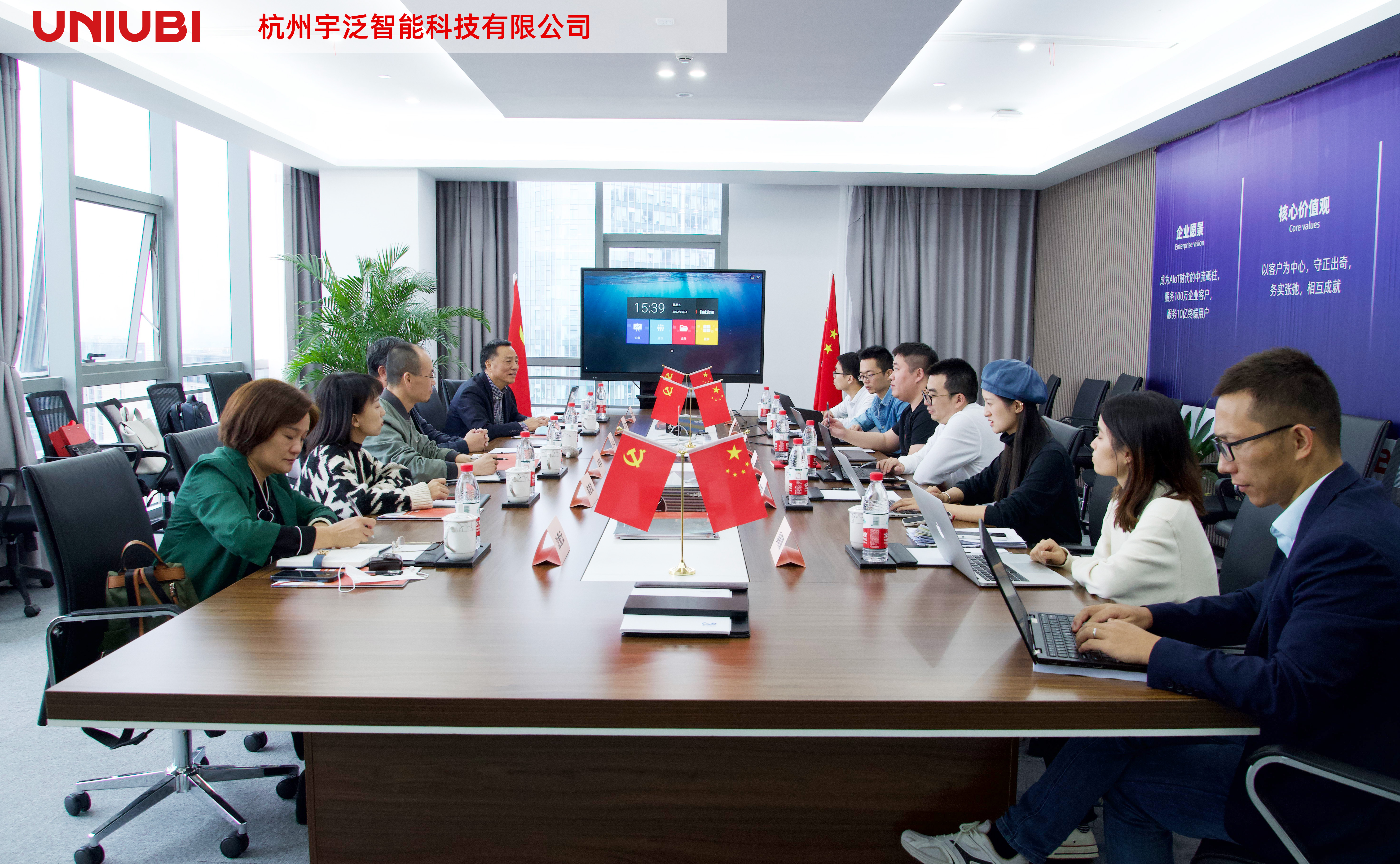 10月15日,浙江省安防协会秘书长赵永华、副秘书长专家委主任吴云龙等一行来访宇泛交流调研,公司董事长赵弘毅、执行副总裁王逸飞、副总裁马元远陪同参加座谈交流。