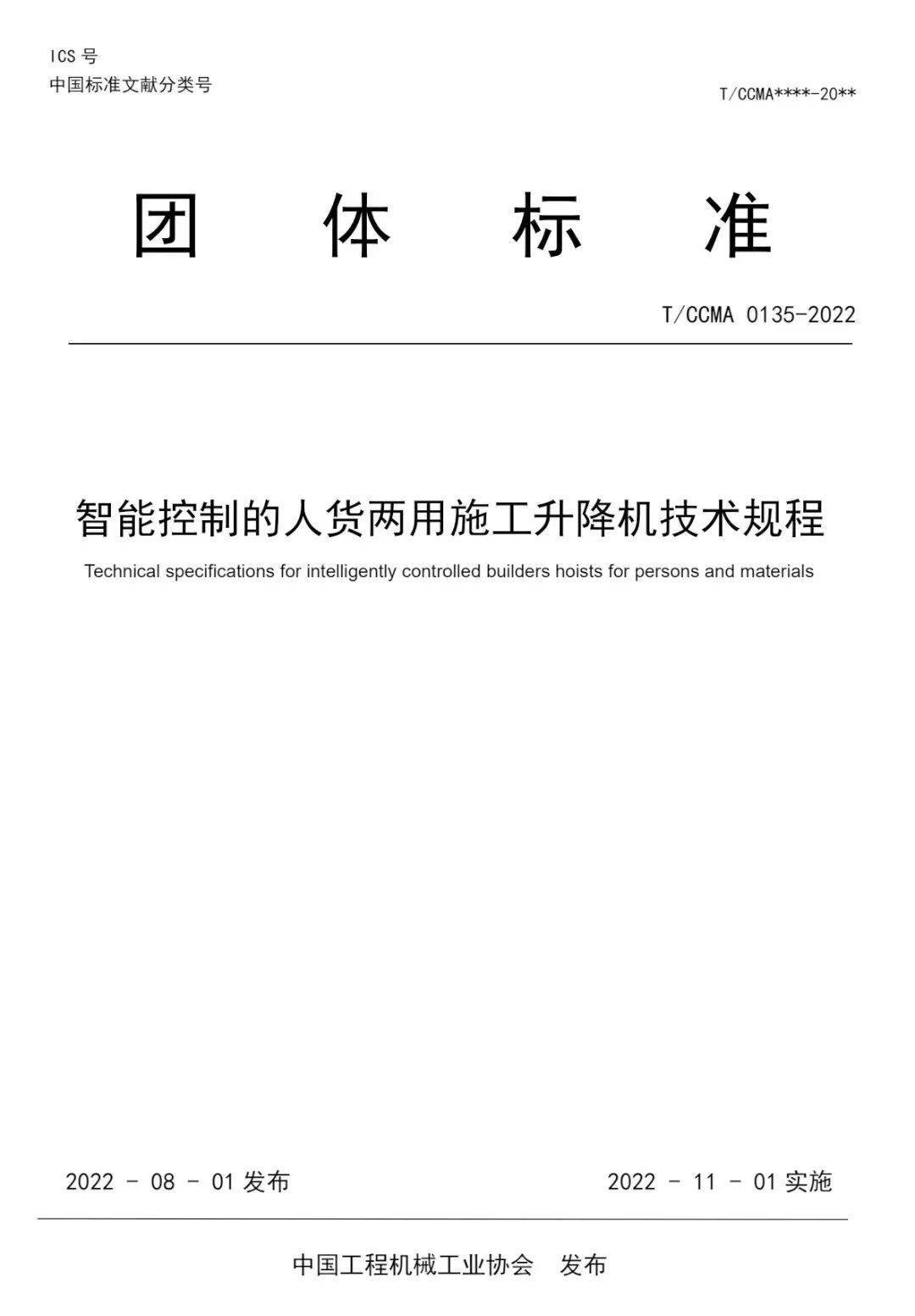近日,由中国工程机械工业协会施工机械化分会组织编制,中国工程机械工业协会批准发布的智慧工地新标准“《智能控制的人货两用施工升降机技术规程》团体标准T/CCMA 0135-2022 ”将于2022年11月1日起施行。