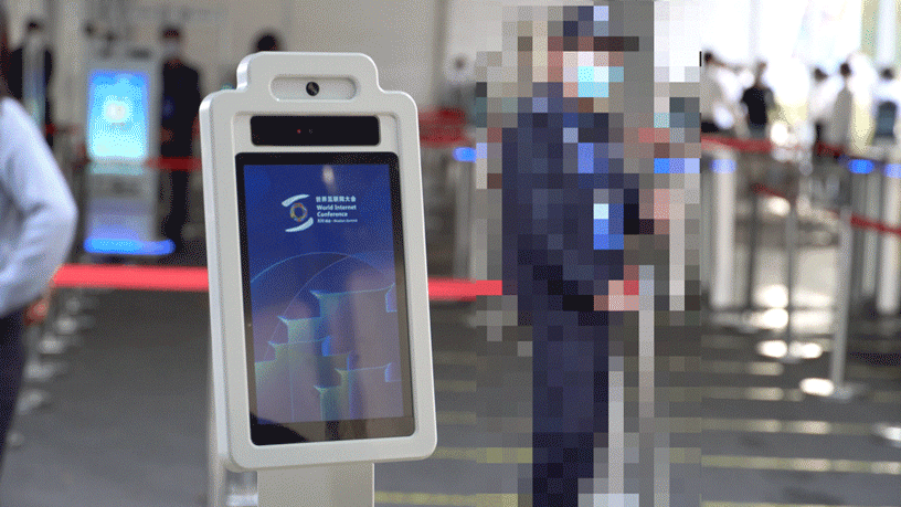 通过大会入口的“数智哨兵”人脸识别设备,通行者无需摘口罩,直视屏幕即可自动显示实时体温、健康码状态、核酸检测结果,大大提高通过效率,免除了传统纸质登记易疏漏、难追溯、存在交叉感染风险的烦恼。