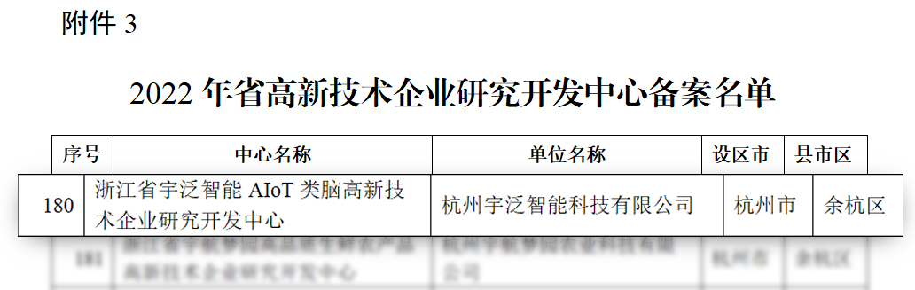 近日,浙江省科学技术厅公示了2022年省高新技术企业研究开发中心认定名单,凭借领先的创新能力与研发能力,“浙江省宇泛智能AIoT类脑高新技术企业研究开发中心”获评。