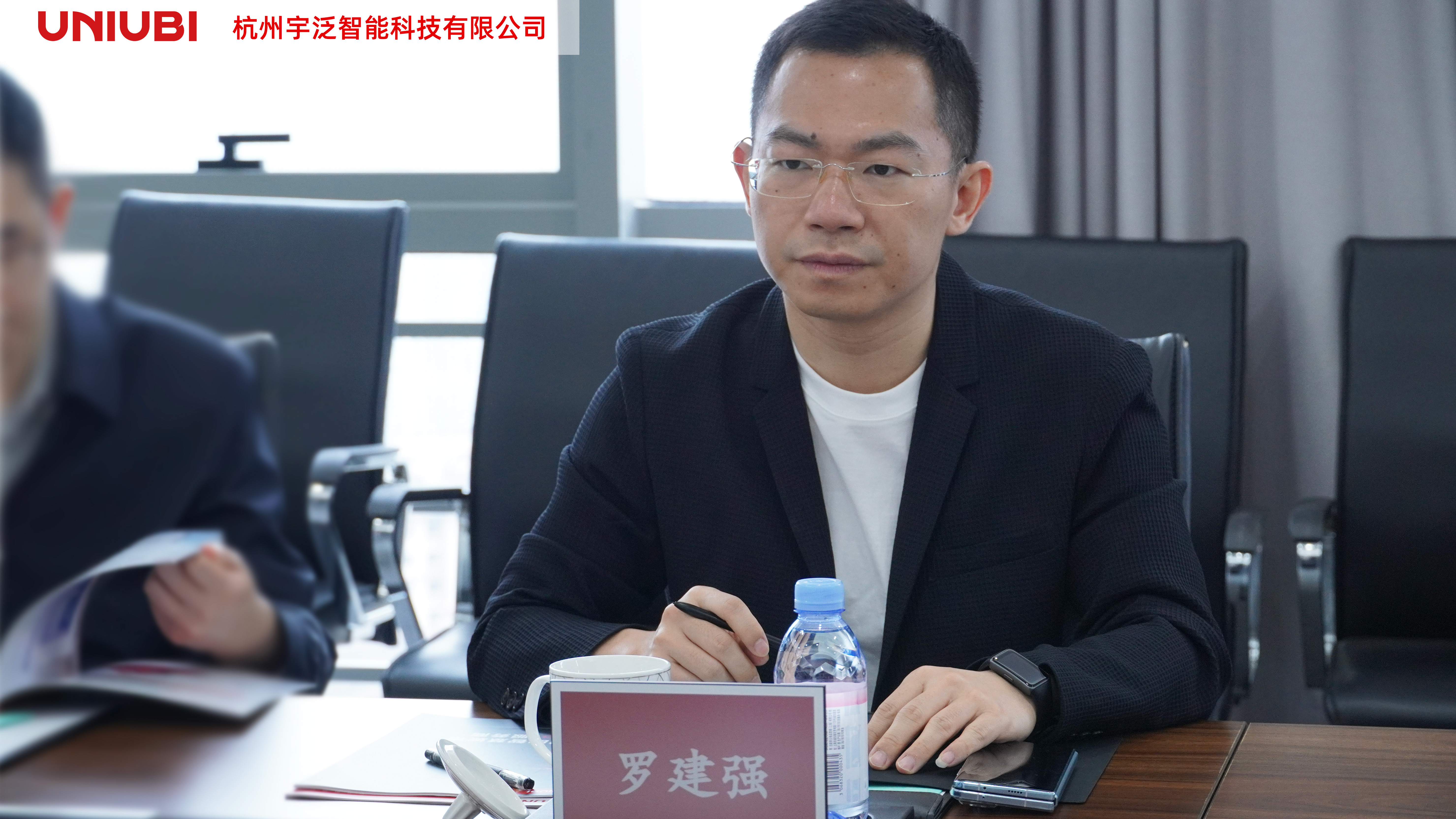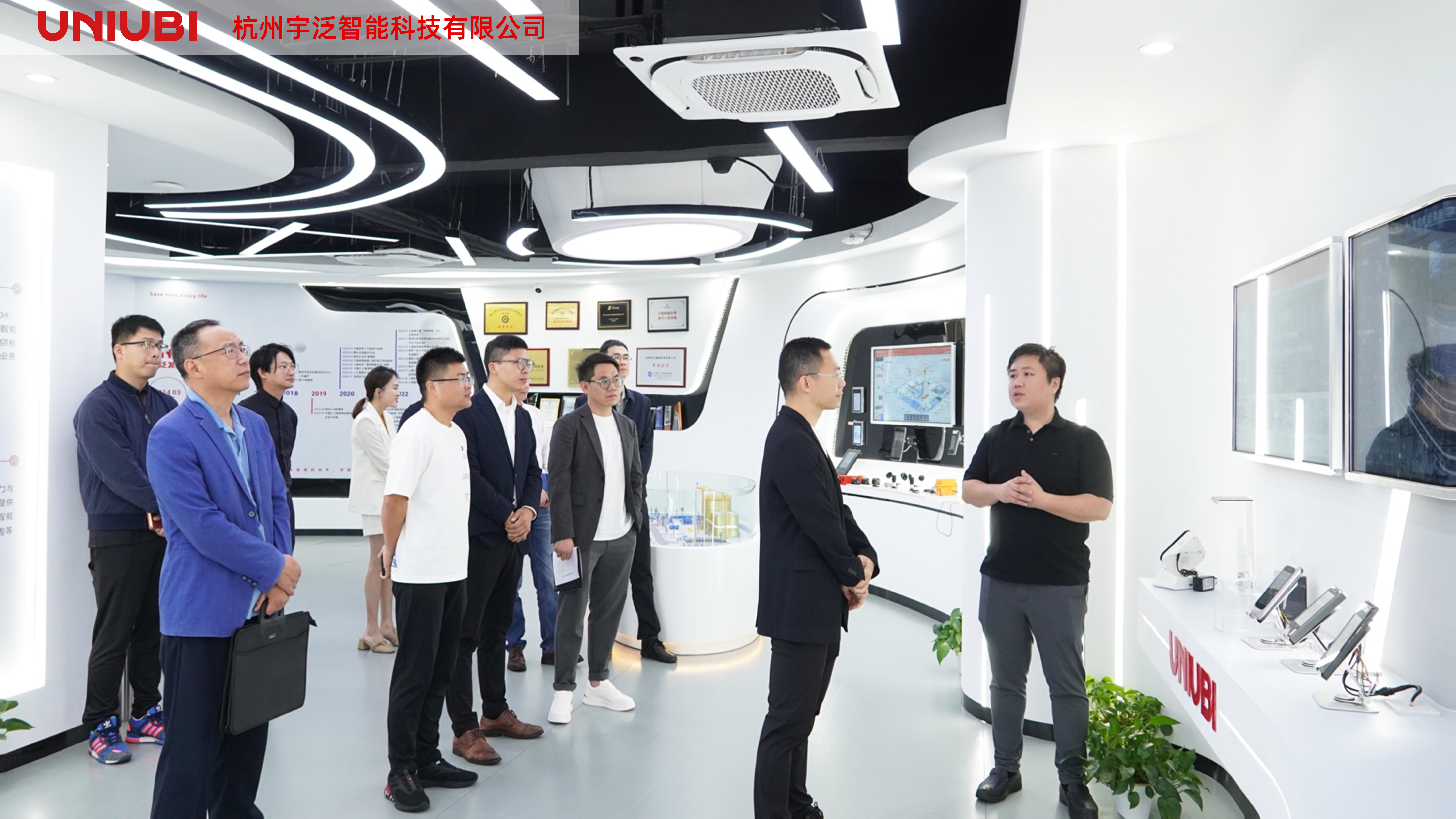 在宇泛展厅,董事长赵弘毅向罗区长一行介绍了宇泛的发展历程、重要荣誉,以及宇泛在智慧城市各场景的落地创新等方面的情况。