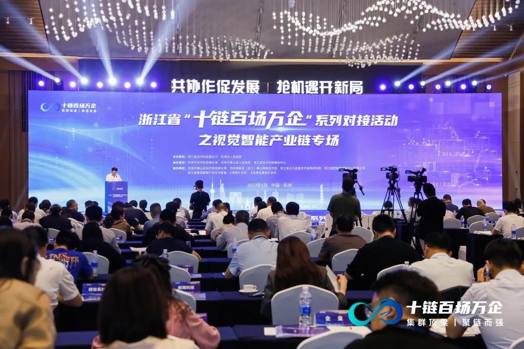 5月16日,由浙江省经济和信息化厅、杭州市人民政府主办,以“共协作促发展 抢机遇开新局”为主题的浙江省“十链百场万企”系列对接活动之视觉智能产业链专场活动在杭州市萧山区举行。长三角视觉智能产业龙头企业及产业链上下游企业代表,以及有关高等院校、科研院所、行业协会、金融机构和媒体代表约300人受邀参加活动, 宇泛作为长三角视觉智能产业龙头企业出席了本场活动。