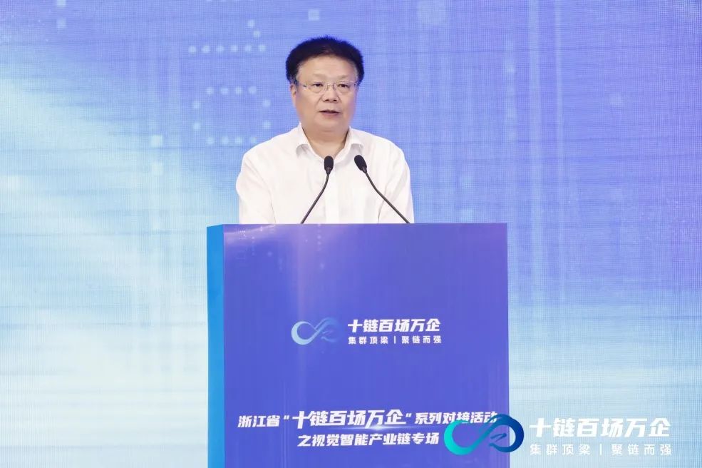 厉敏在致辞中指出,视觉智能产业链是全省着力打造的标志性产业链之一。经过多年发展,视觉智能产业链成为浙江省数字经济往高攀升、向新进军、以融提效的集中体现,已经形成三大发展特点。 一是龙头企业成为产业发展的“金名片”。 海康威视、大华股份、宇视科技位居全球行业第一、二、三位,舜宇光学手机镜头出货量全球第一,还涌现了大立科技、 宇泛智能 、当虹科技等一批“专精特新”企业。 二是相关技术创新成为产业发展的“金钥匙”。 浙江省视觉智能领域共有国家级企业技术中心12个、省级重点企业研究院27家,创建有国家城市大脑人工智能开放创新平台、视频感知人工智能开放创新平台等公共服务平台。 三是高能级平台建设成为产业发展的“金梧桐”。 浙江结合“415X”先进制造业集群建设,着力形成“核心区+协同区”的高能级产业平台。下一步,省经信厅将紧扣数字经济高质量发展强省的首要任务,以更大力度实施数字经济创新提质“一号发展工程”为主线,抓好视觉智能产业“项目、集群、生态、机制”等4个方面建设。
