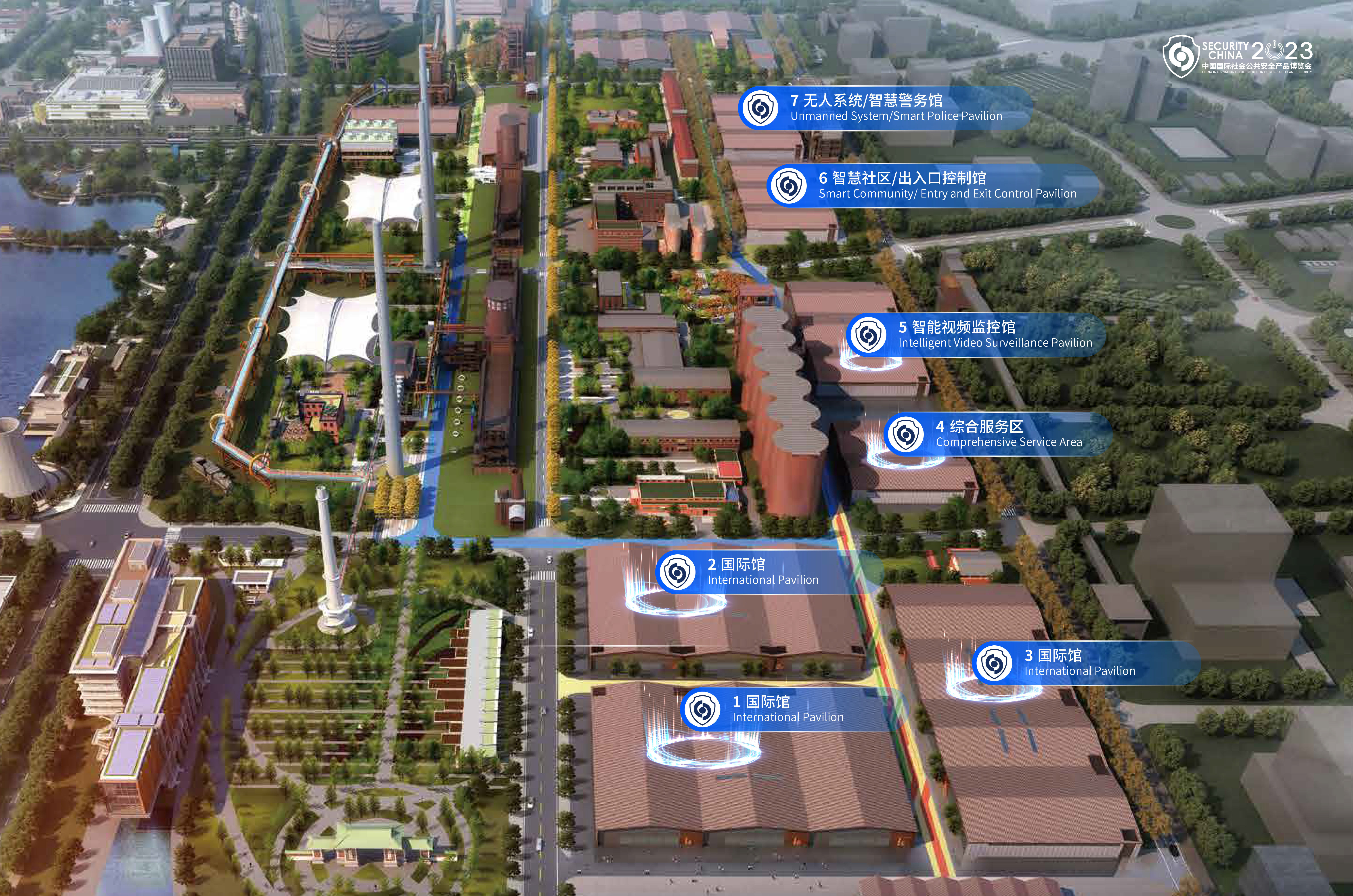 博览会占用了首钢会展中心全馆, 展览面积近7万平方米,参展企业500余家,涵盖了国际和国内智能视频监控、智慧警务、智慧社区、出入口控制、无人系统安全等多个展区 。首次打造了以“人工智能/智慧物联”为核心的“前沿技术馆”,并重磅推出“智能芯片”“视频网络与数据安全”和“专精特新”等多个特色专业展区,并创新推出了“公共安全标准化”展区,展现公安标准化工作在维护社会稳定、保障人民安宁中发挥的重要作用。