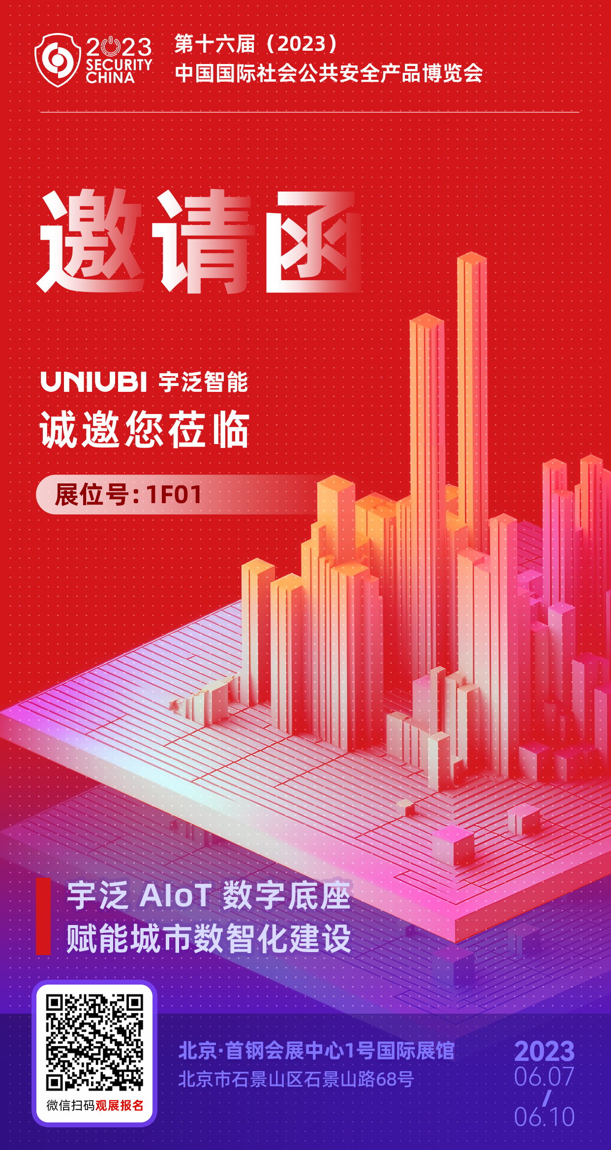 2023年6月7日~10日,宇泛诚邀您拨冗莅临 1F01展位 ,现场观摩和体验宇泛智能化产品和行业解决方案,期待同各位新老朋友一起相聚首都,共襄安防盛举,共同把握行业新机遇!