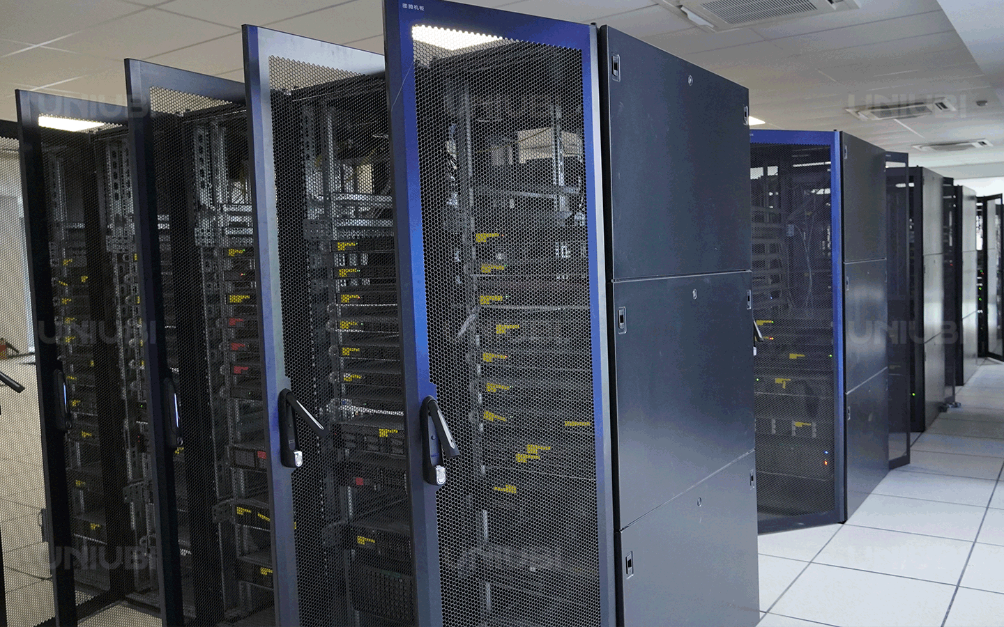 此外,宇泛也为当虹科技建设了机房的UPS系统,采用全方位的机房环境监控系统,对机房内温度、湿度、漏水检测、空调状态及UPS状态等数据进行监测,并通过监控显示屏实时显示。如发生异常情况,机房环境的异常信息可以及时通过短信或电话形式触达管理人员,确保机房稳定运行。