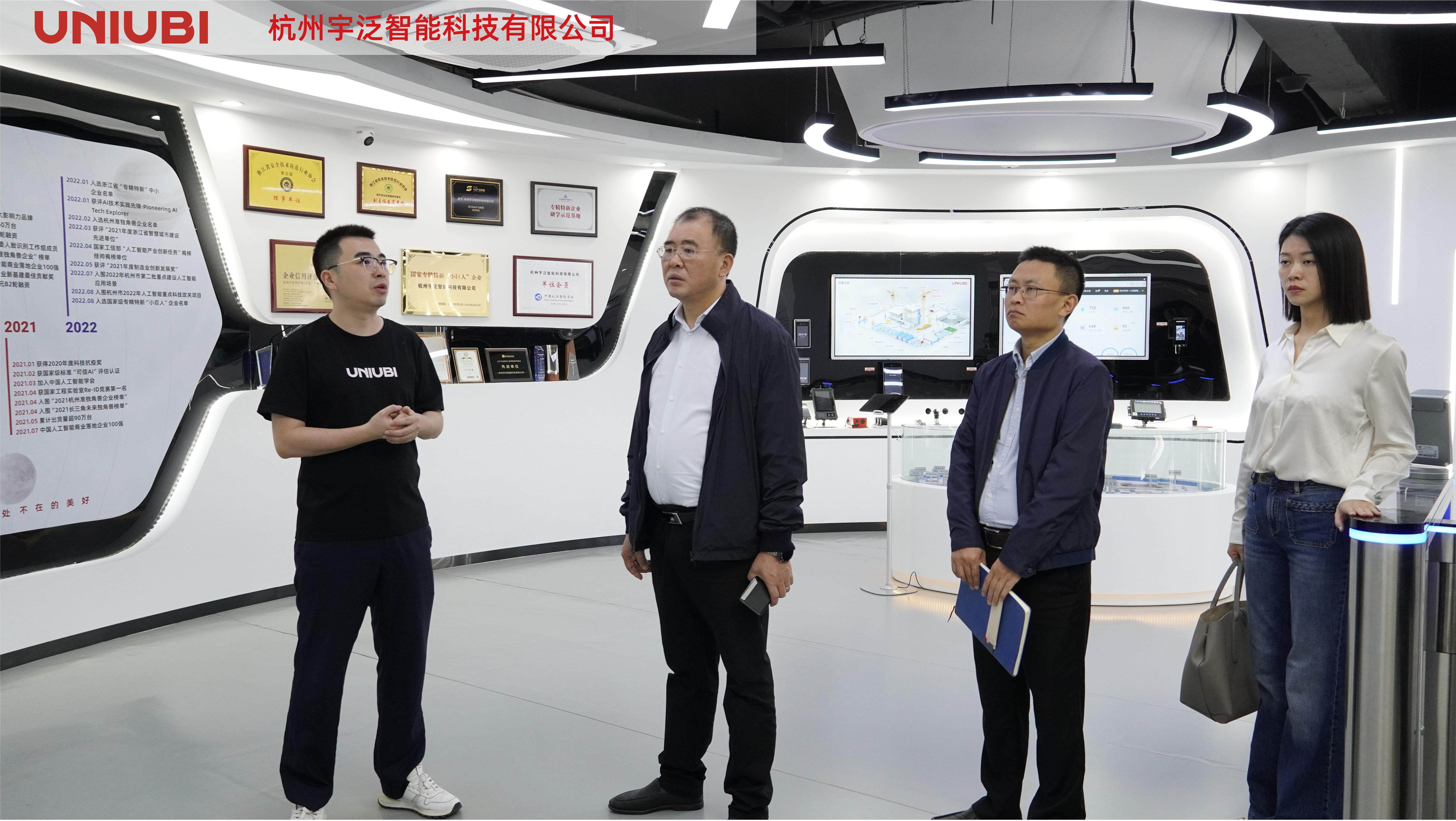 调研伊始,王飞一行参观了宇泛展厅,听取了宇泛的发展历程,重要荣誉,技术创新以及落地成果等方面的情况。