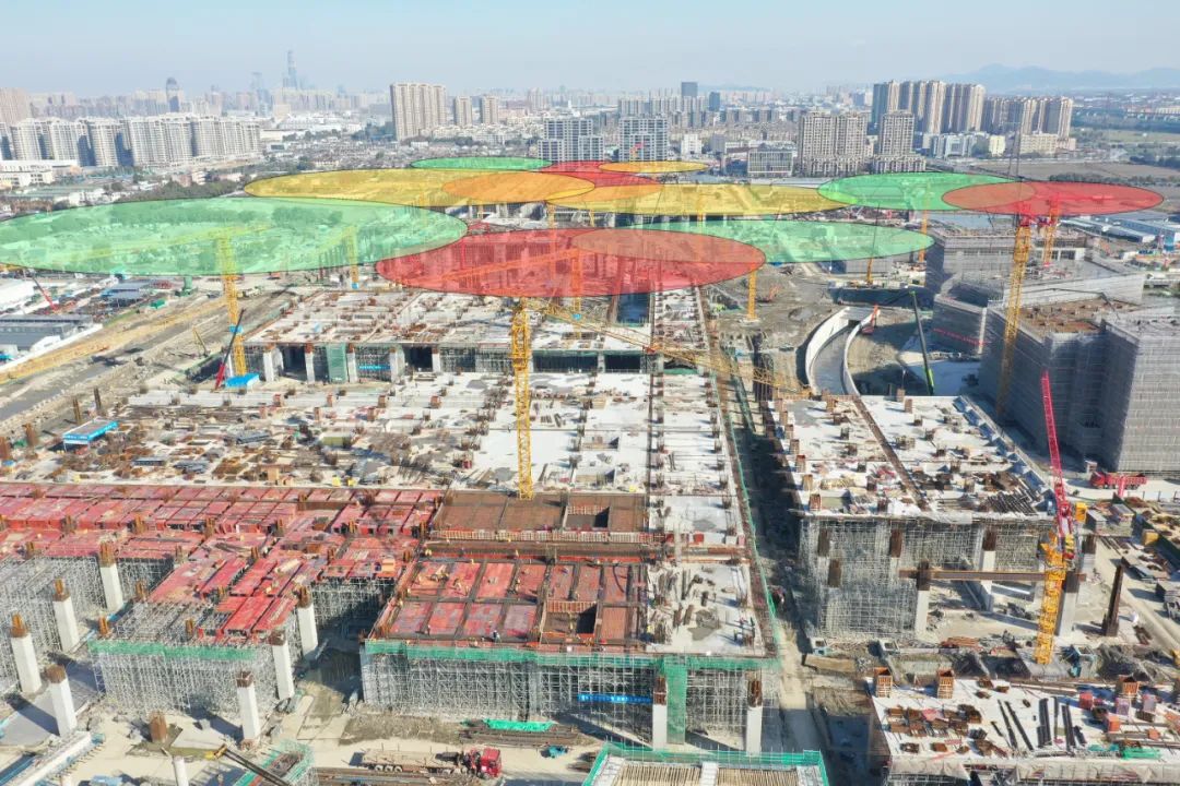 2、塔机数量巨大: 51 台塔机同时作业,碰撞关系复杂,安全隐患大,且基于传统模式的机械管理缺点多、算法难以满足且实现复杂