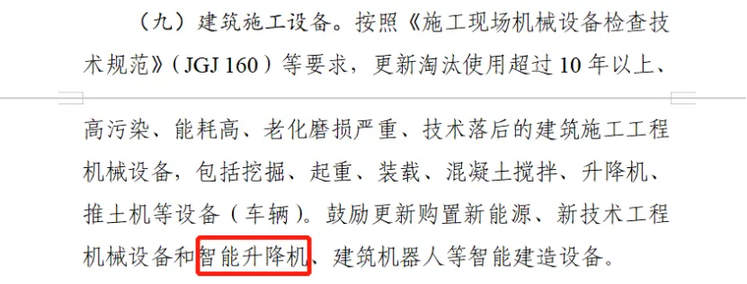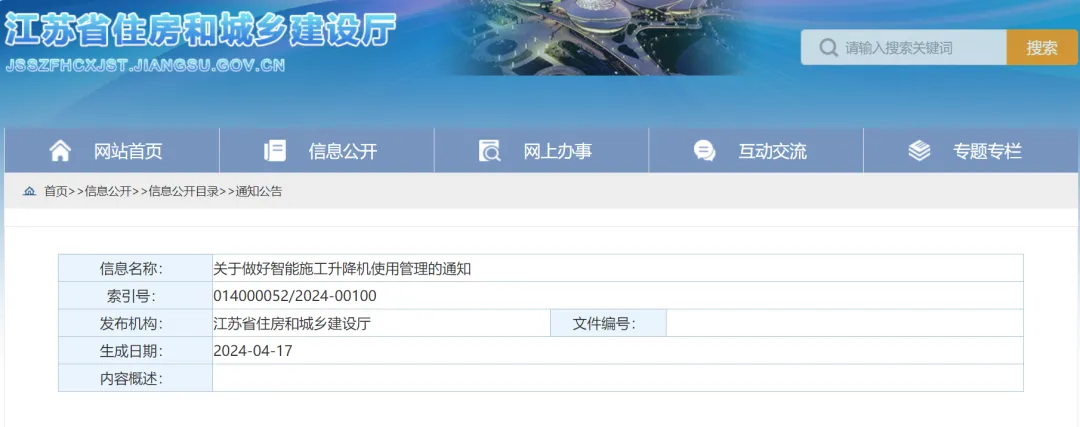 江苏省住房和城乡建设厅也在近期发布了《关于做好智能施工升降机使用管理的通知》,明确了智能施工升降机在江苏省施工现场的设备要求、安全管理要求、信息化管理要求及监督检查机制等,确保智能施工升降机及相关智能建造设备能在符合国家安全标准的前提下,为江苏省的基础设施建设提供更为可靠和高效的服务。