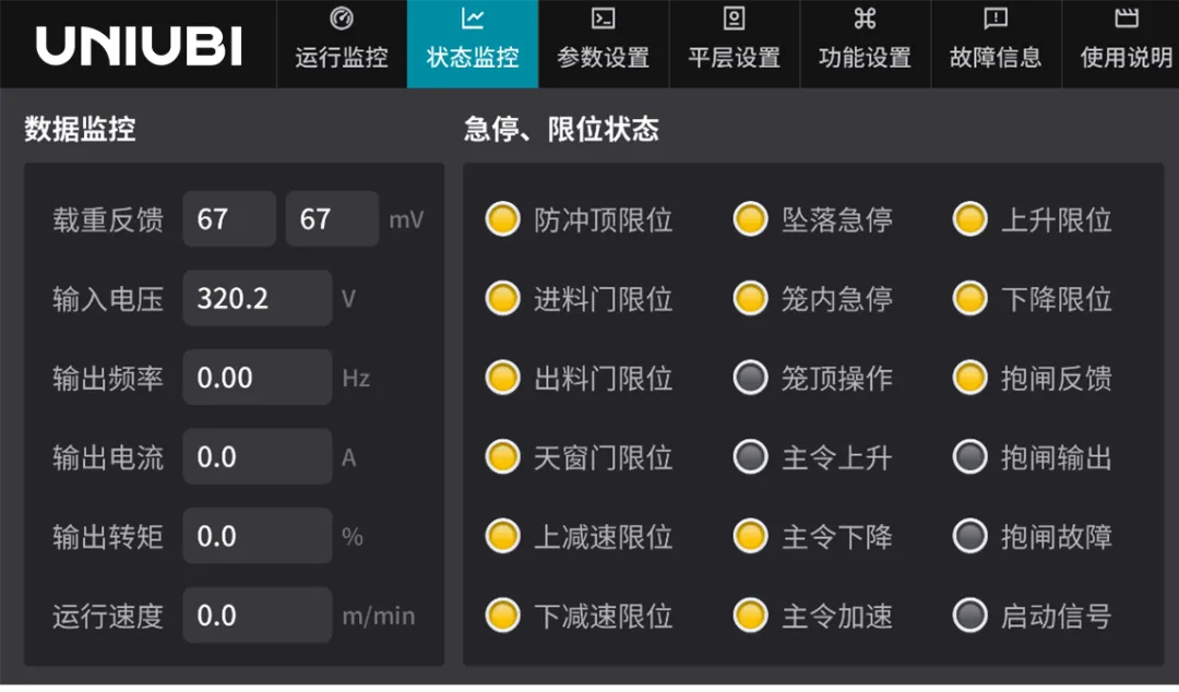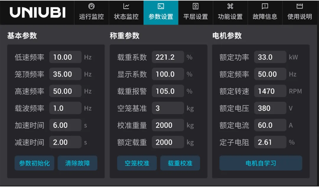 与主机原厂电控对接完成后,可通过主机设备或在线平台对升降机变频器等主要参数进行设置,以优化设备性能。
