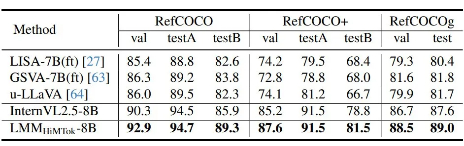 3、多任务统一建模:统一架构实现多任务高效协同。 通过统一的令牌表示方法,HiMTok使视觉分割任务与文本生成任务共享Transformer架构。在保持模型结构和参数规模基本不变的前提下,实现了图像理解、图像分割、目标检测等多任务的有机融合,显著提升了学习效果和泛化性,同时降低了训练和推理开销。