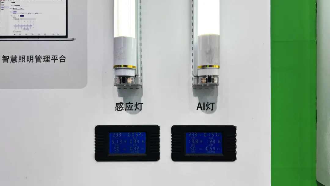 在现场的灯光体验室内,体验者可以更加深入体会到宇泛超光效AI节能灯的照度优势,现场照度仪实测显示的照度值远超行业平均水平。