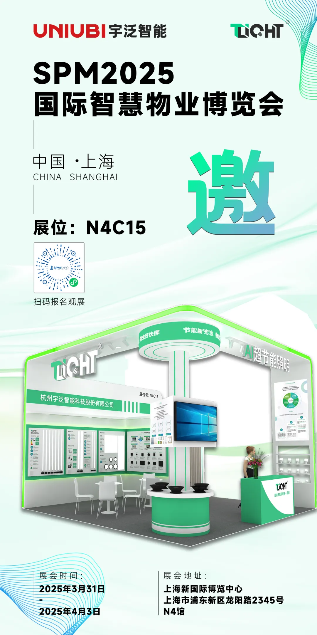 3月31日,为期4天的2025上海国际智慧物业博览会如期在上海新国际博览中心如期举办。开幕首日,上海新国际博览中心N4馆人潮涌动,作为照明领域的先锋力量,宇泛本次携最新AI照明技术及相关创新产品亮相,为每一位莅临的参观者带来前所未有的智能体验!