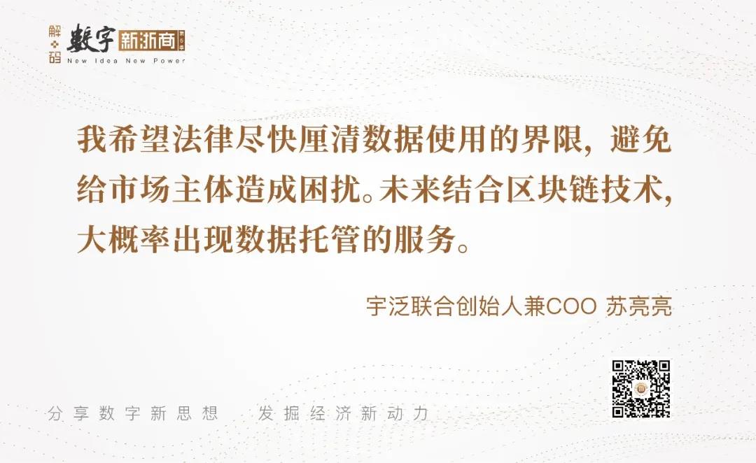 苏亮亮:我希望法律尽快厘清数据使用的界限,避免模棱两可,给市场主体造成困扰。法律条文从制定到真正落地会经过较长的时间,需要完善很多配套的制度和设施,这就需要行业自身也逐渐完善生态。宇泛已经开始进行一些有意义的探讨,包括区块链技术的应用、对有算力的设备进行安全防护等,但我们希望在界限清晰前,出现数据托管类公司来解决相关问题。