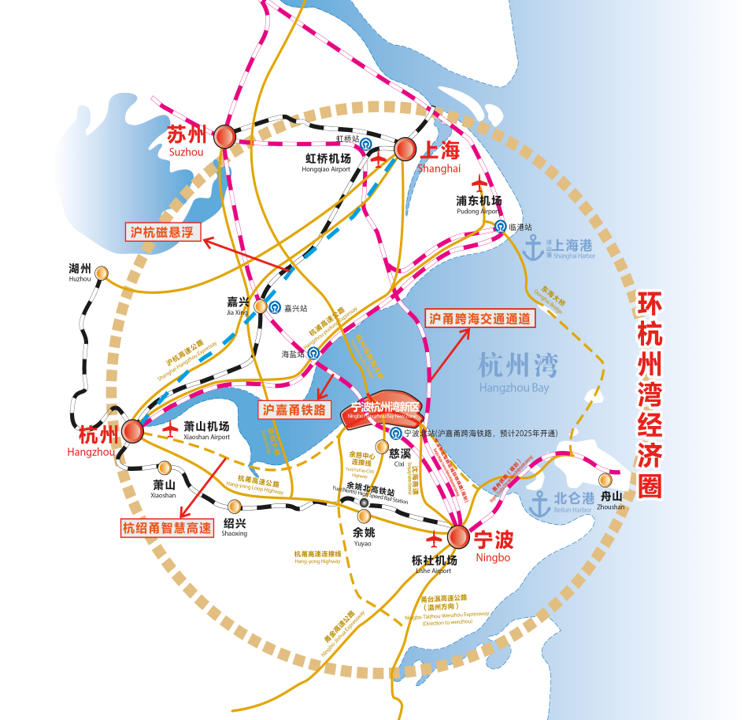 宁波杭州湾新区位于浙江省宁波市北部,杭州湾跨海大桥南岸,地处沪杭甬经济圈中心,居于上海市、宁波市、杭州市、苏州市的几何中心,是宁波市接轨上海、融入长三角的门户地区,也是中国长三角经济圈中最具发展潜力的战略要地。