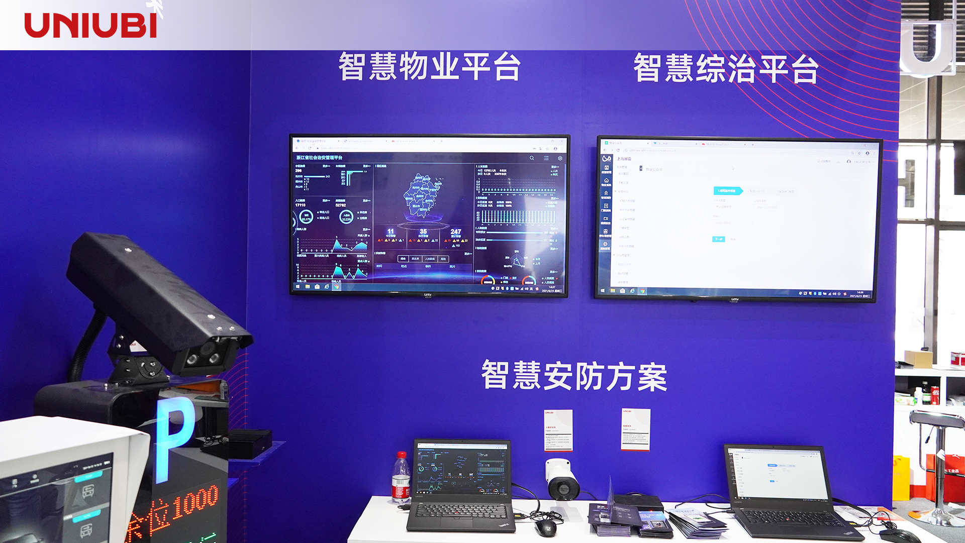 展位上,宇泛从应用场景出发,针对智慧社区多个细分领域,布置了智慧人行方案、智慧车行方案、智慧安防方案、智慧物业平台、智慧综治平台五个板块,丰富的智能硬件结合社区不同服务场景,打造新型智慧社区场景化解决方案,帮助社区实现智能化管理,帮助物业切实降本增效。