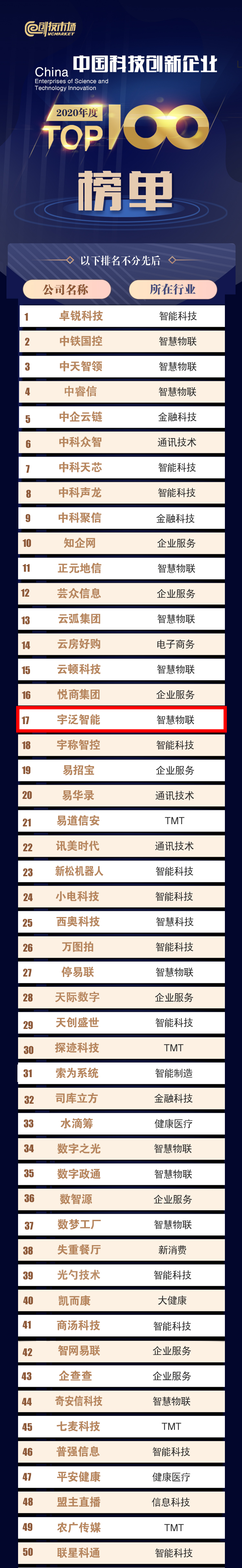 此次榜单由国内多家学术研究机构、投资机构、科技领域创新领军企业共同发起,通过对社会影响力、商业创新力、卓越领导力、产业影响、商业价值、增长引擎六个维度的考察,最终确定了TOP100科创企业榜单。宇泛凭借在各个维度的卓越表现以及产品创新能力光荣登榜。