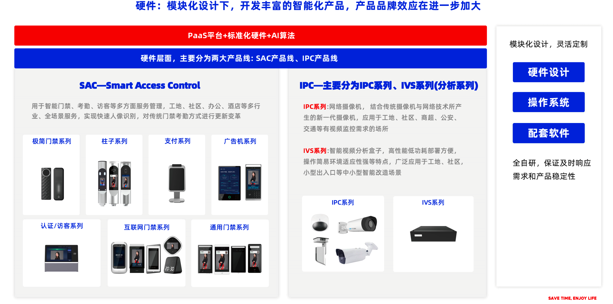 为了更好地支撑宇泛在智慧城市建设中的业务布局,在硬件层面,宇泛自研90余款AI视觉相关终端产品,以全栈自研、模块化设计、灵活定制、稳定可靠的特点快速响应客户定制需求,出货量超90万台。