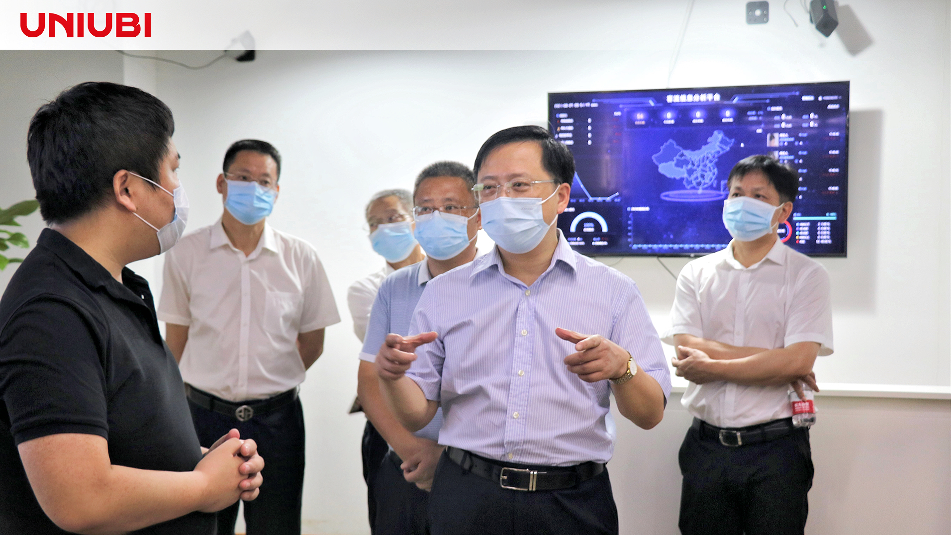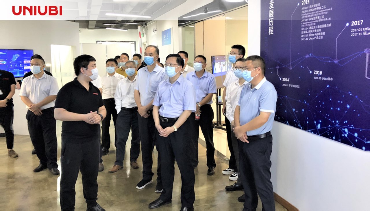 8月27日,衢州市委副书记、市长高屹等一行领导莅临宇泛考察交流,宇泛董事长赵弘毅、副总裁苏亮亮、焦克亮、张波、郑东共同接待了到访领导,陪同参观公司。参观过程中,董事长赵弘毅向领导介绍了宇泛的发展历程、创新研发情况以及公司发展状况,解答了有关宇泛人工智能产品的产品优势、科研人员储备情况、目前产品销售状况等问题,并汇报了宇泛近期的经营成果与发展战略。