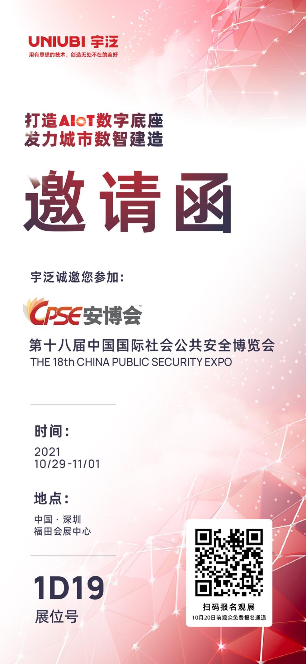 第十八届中国国际社会公共安全博览会暨第十六届中国安防论坛将在2021 年10 月29日 - 11月1 日在深圳福田会展中心召开。