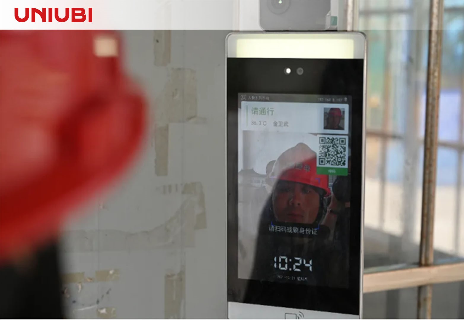 “核验通过,请通行。”在建设工地的出入口,一位头戴红色安全帽的建筑工人在一台人像识别设备前停下了脚步,设备上显示出建筑工人的姓名、健康码及体温状况等信息,确认信息无误则语音提示工人通行。